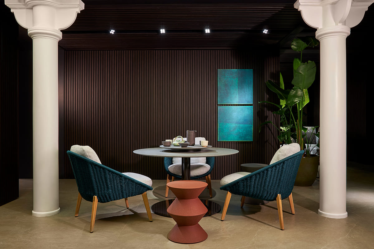 The interior design, artfully orchestrated by Minotti Studio, skillfully reimagines an al fresco ambiance, faithfully resonating with the brand's distinctive style. Within this setting, the seamless integration of natural elements, including wood and stone, enhanced by a meticulously selected array of Mediterranean flora, conjures the inviting and relaxed atmosphere of the locale.