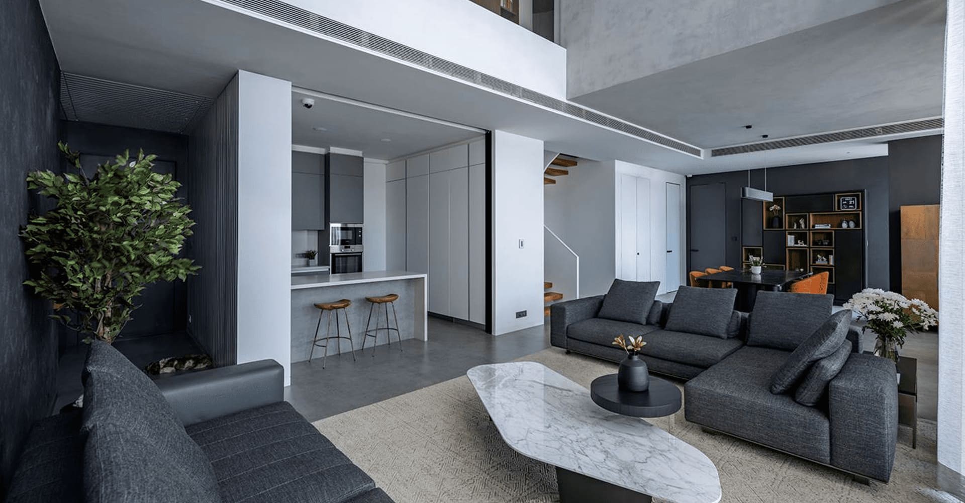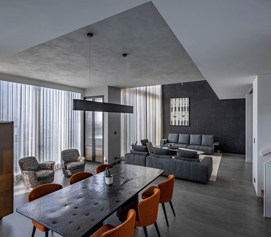 The minimalist style that characterises the interior design, in line with the contemporary character of the building, is enriched by refined details and colour choices in the calm, elegant shades of grey.